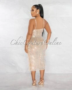 Sweet and elegant, this pearls and feathers dress reigns as the queen dazzle.
