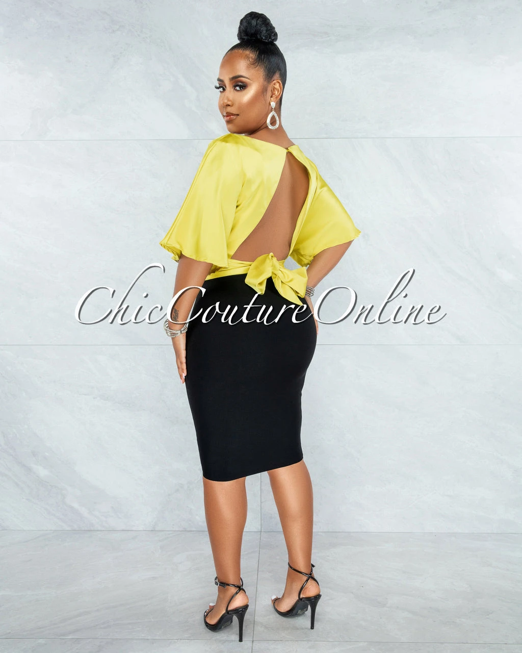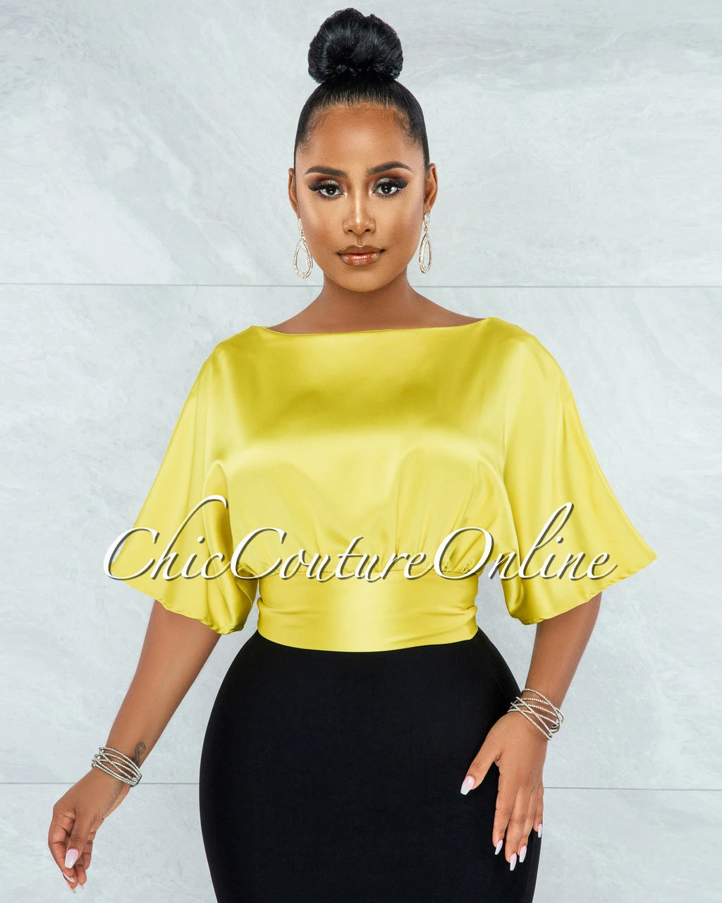 Barnette Yellow Back Key-Hole Satin Crop Top