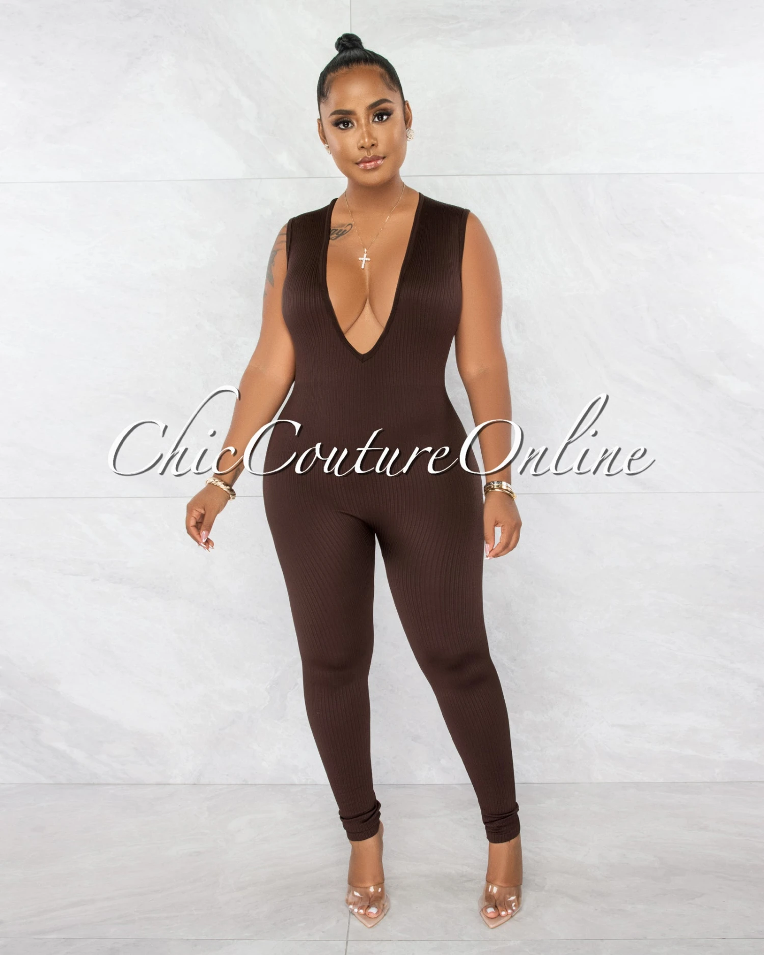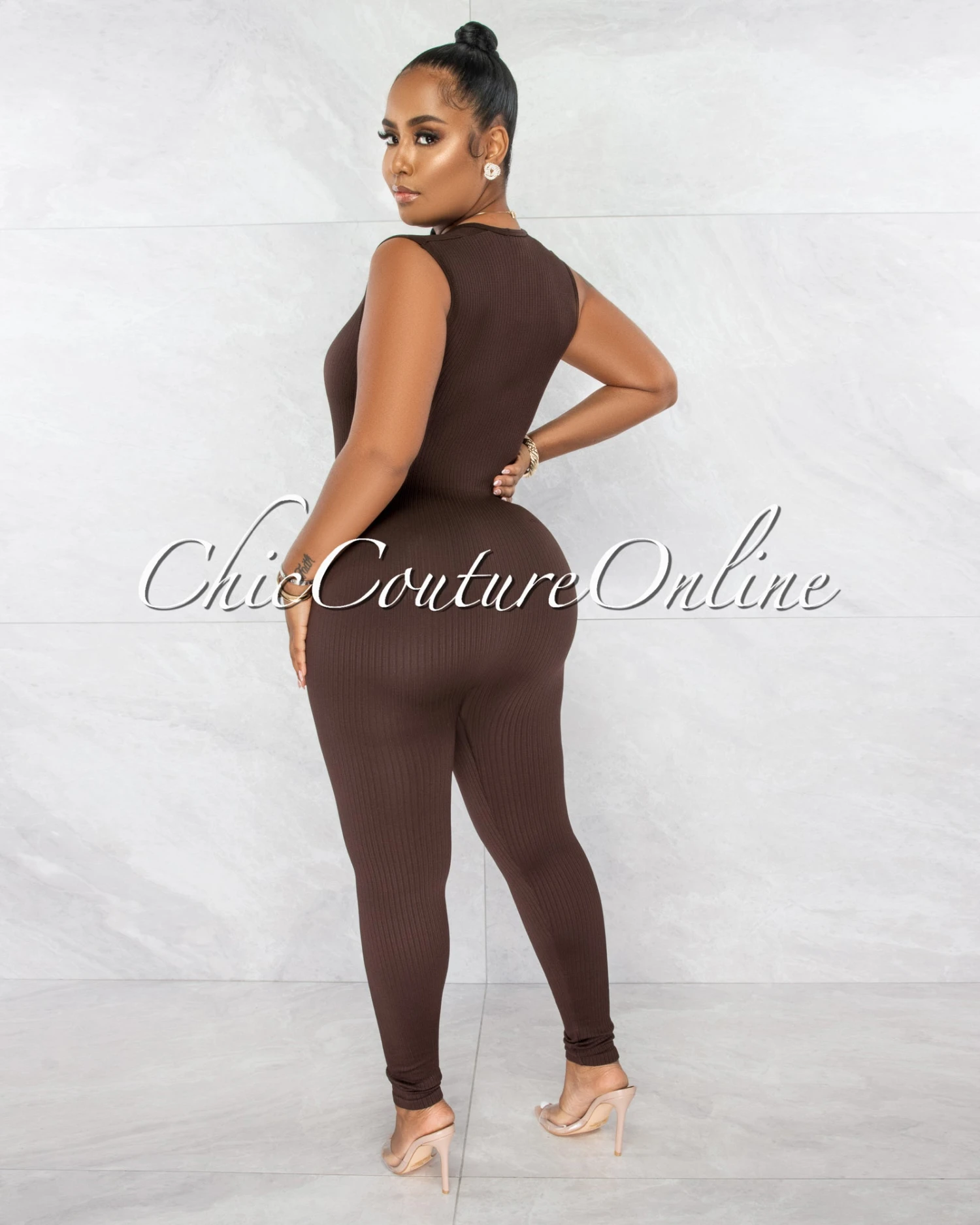 A classic jumpsuit with a ribbed fabric