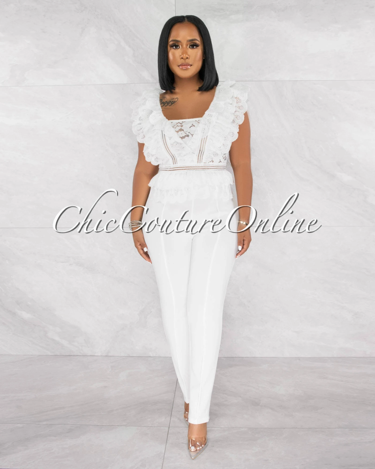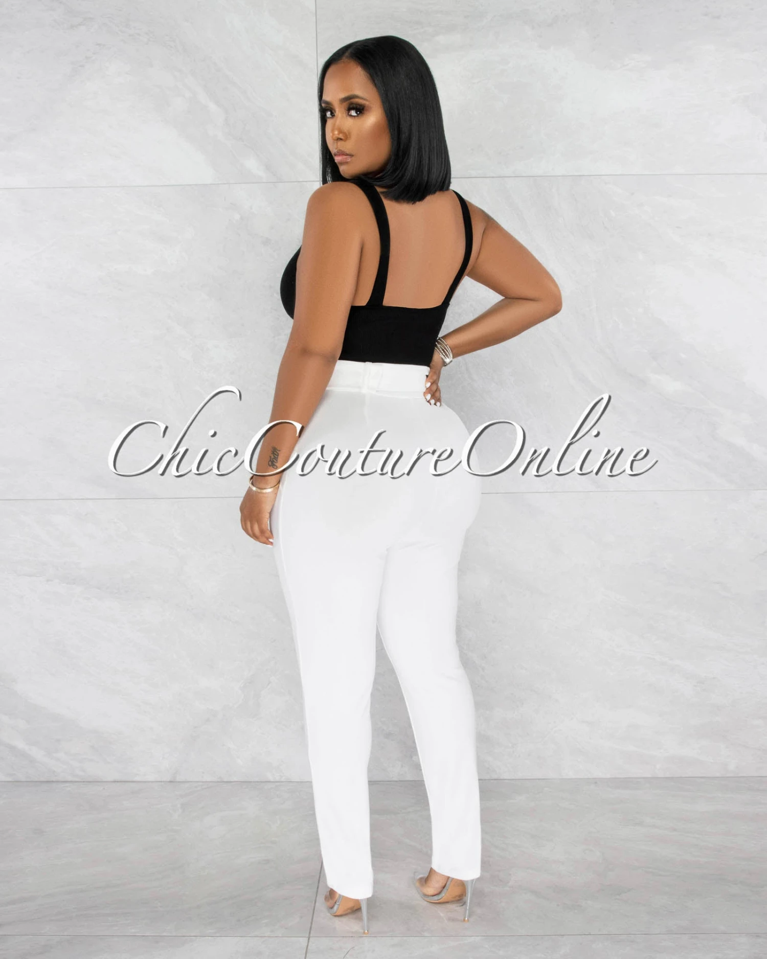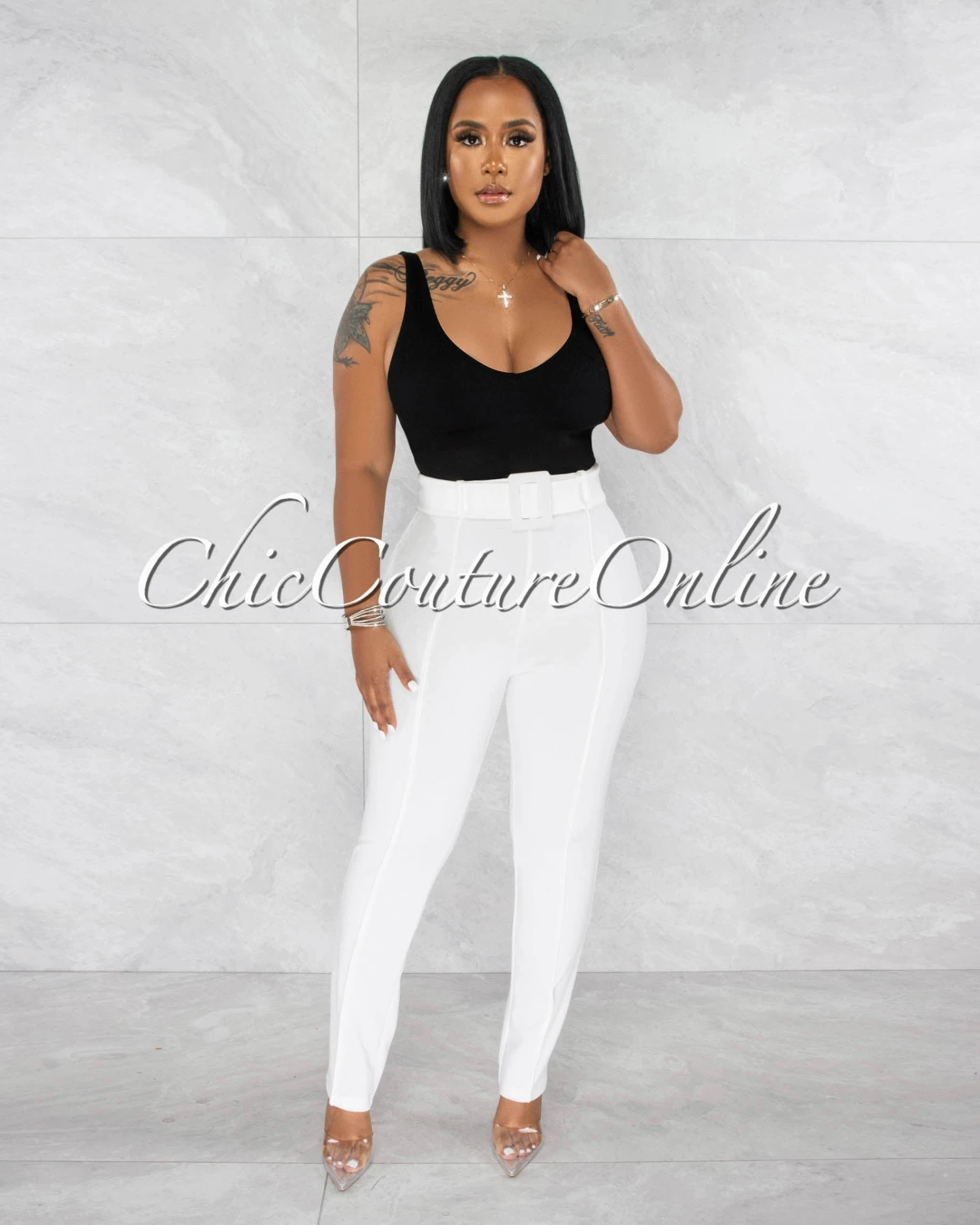 Danna Off-White High-Waist Belt Pants