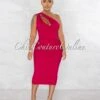 Rendered in the season’s most coveted ponti fabric, this off-the-shoulder dress charms with a modern ruffle design.
