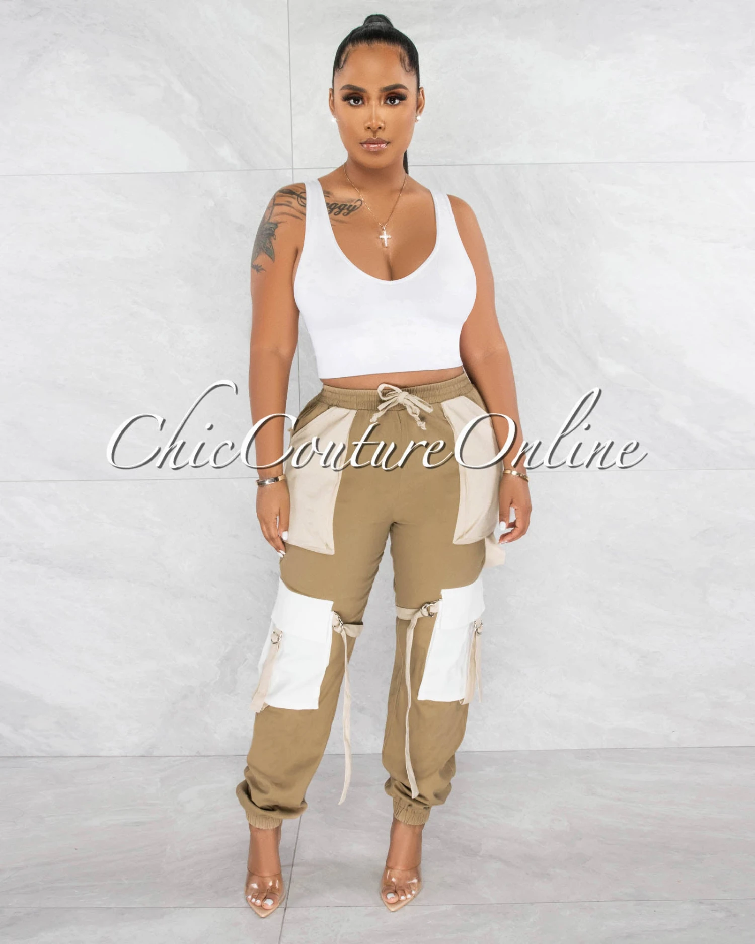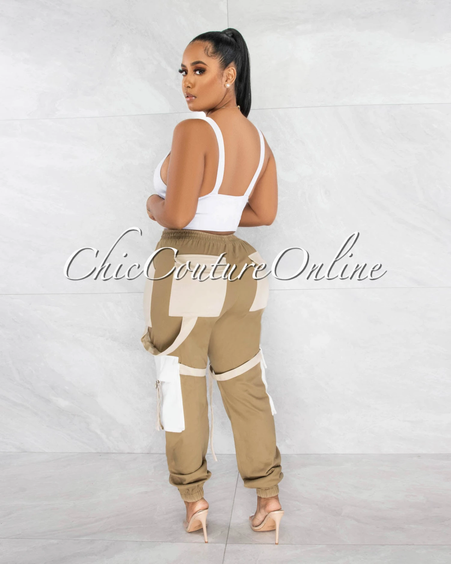Juniva Nude Tones Silver Buckles Cargo Jogger Pants