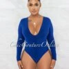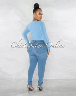 Nilam Baby Blue Deep V Neck Long Sleeves Bodysuit