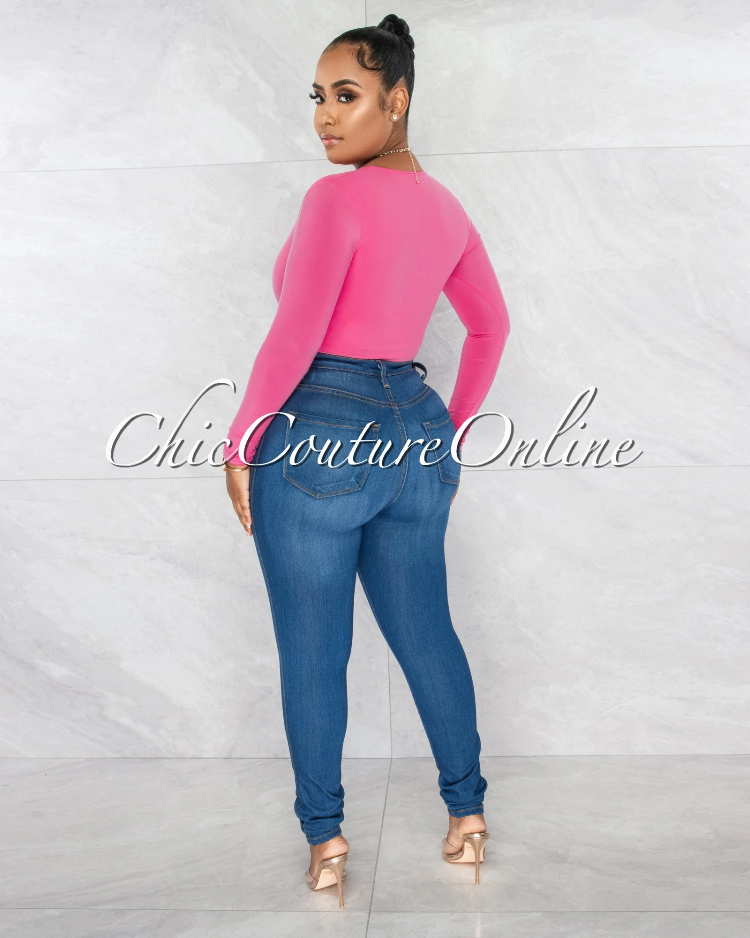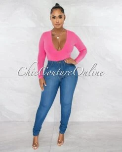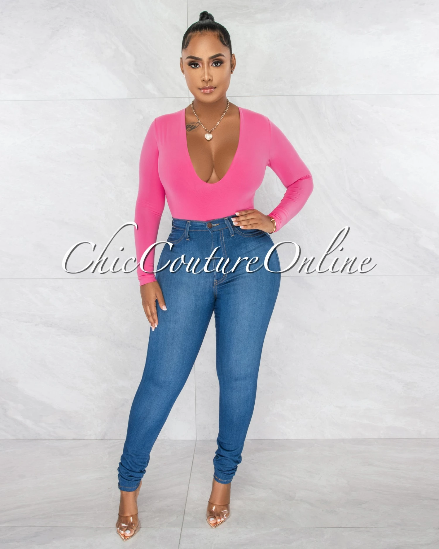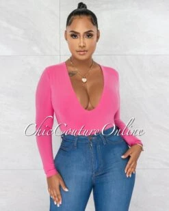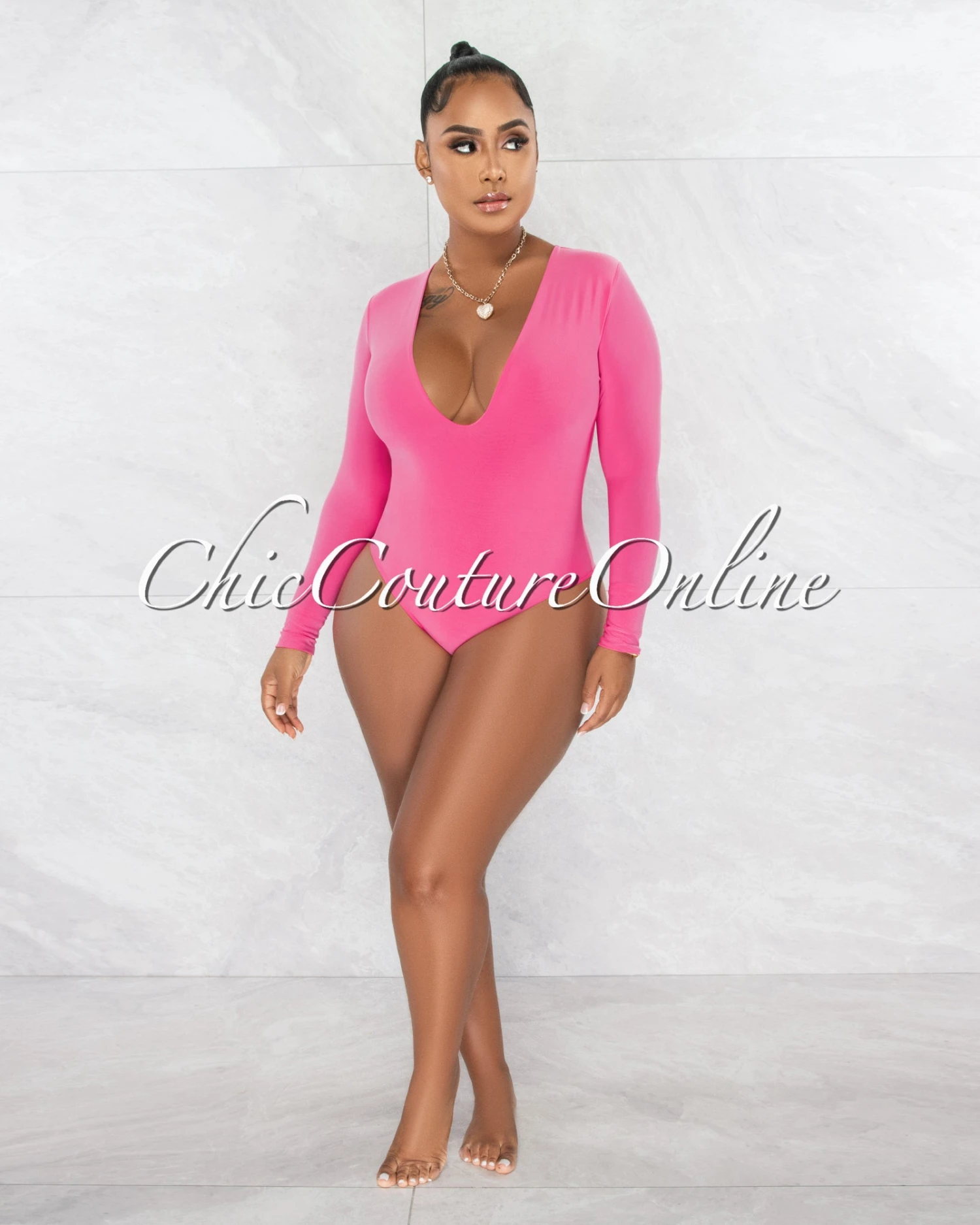 Nilam Bubblegum Pink Depp V Neck Long Sleeves Bodysuit