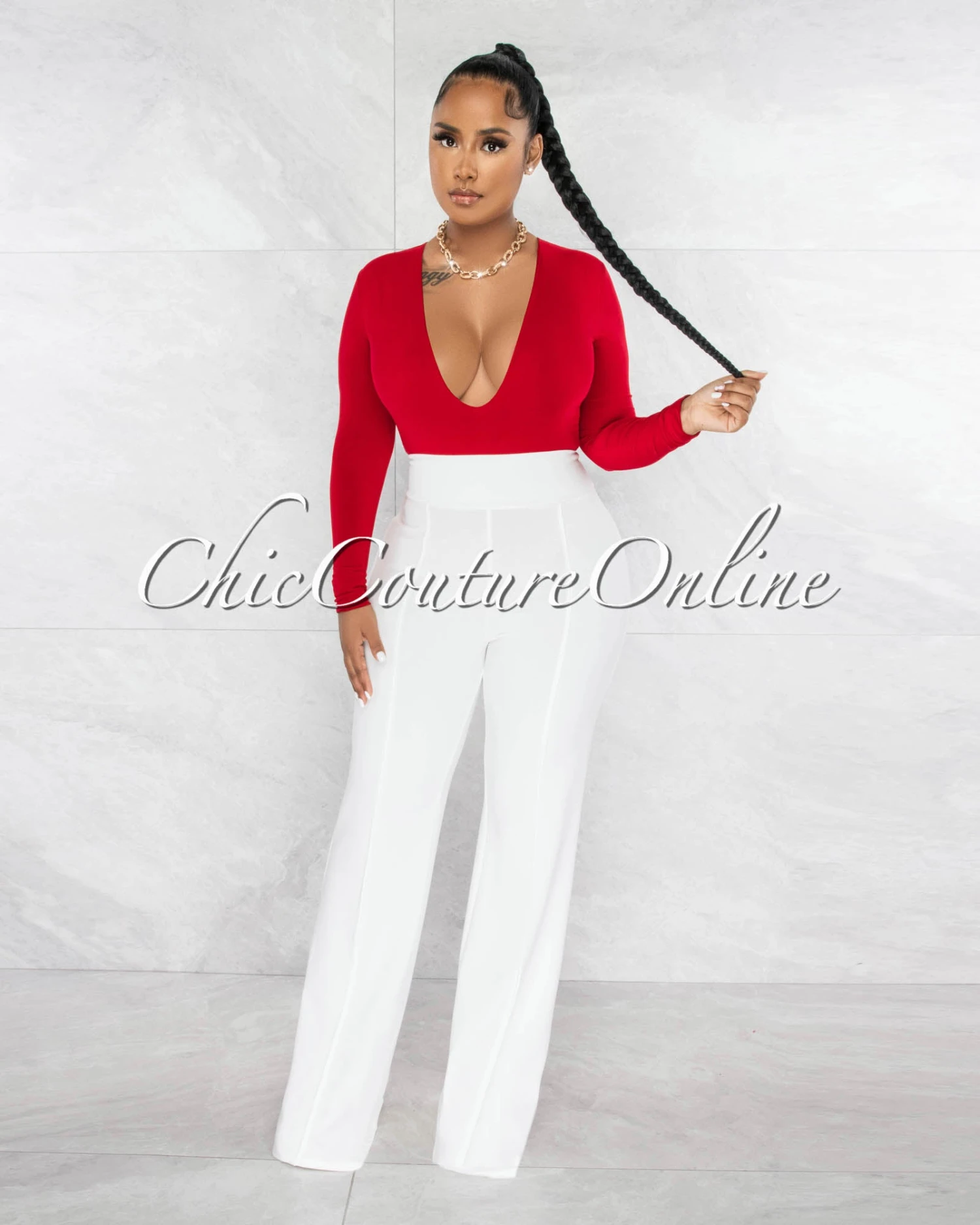 - Deep V Neckline