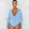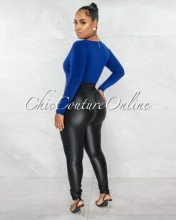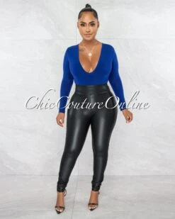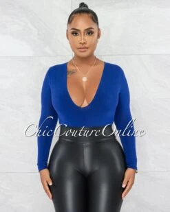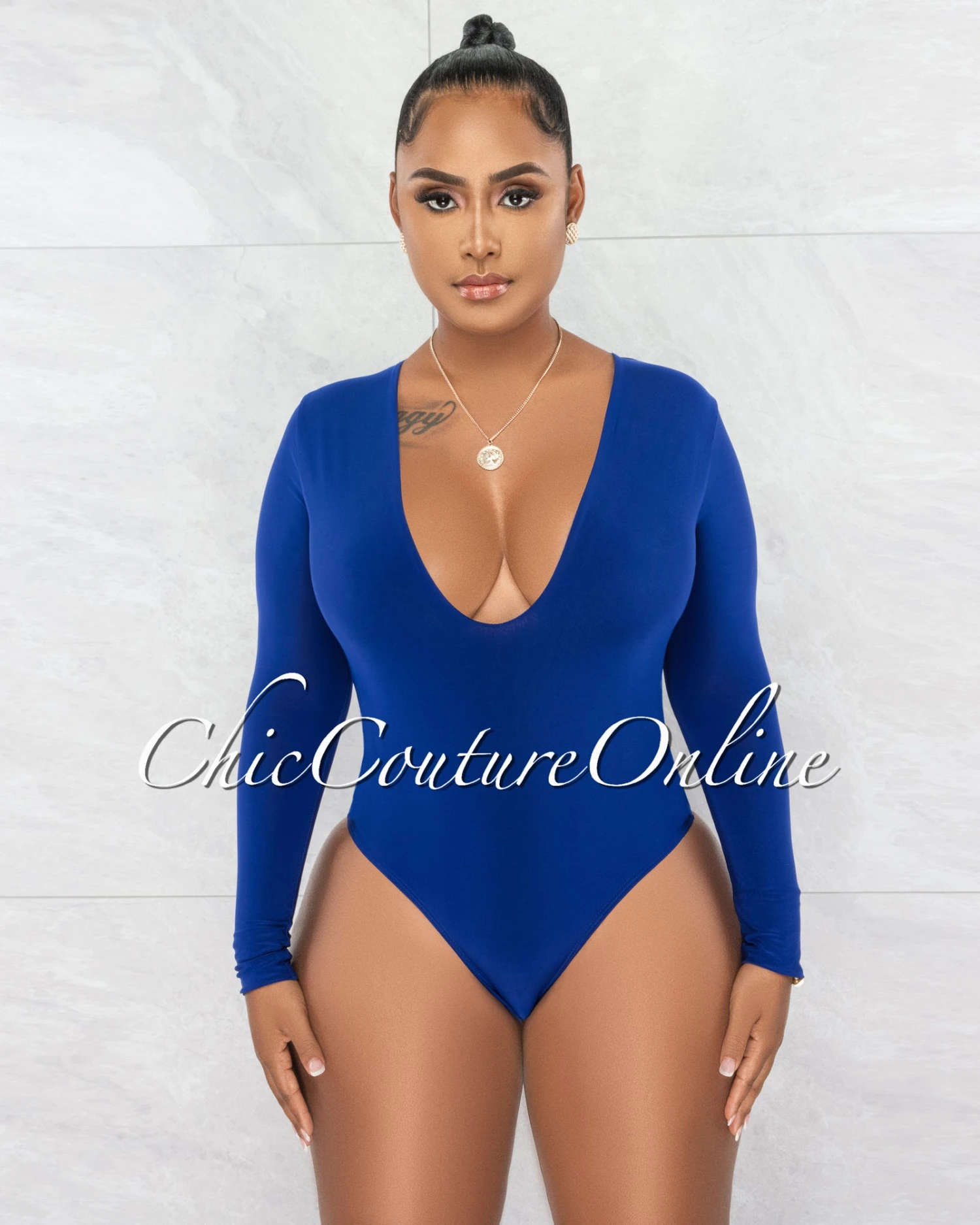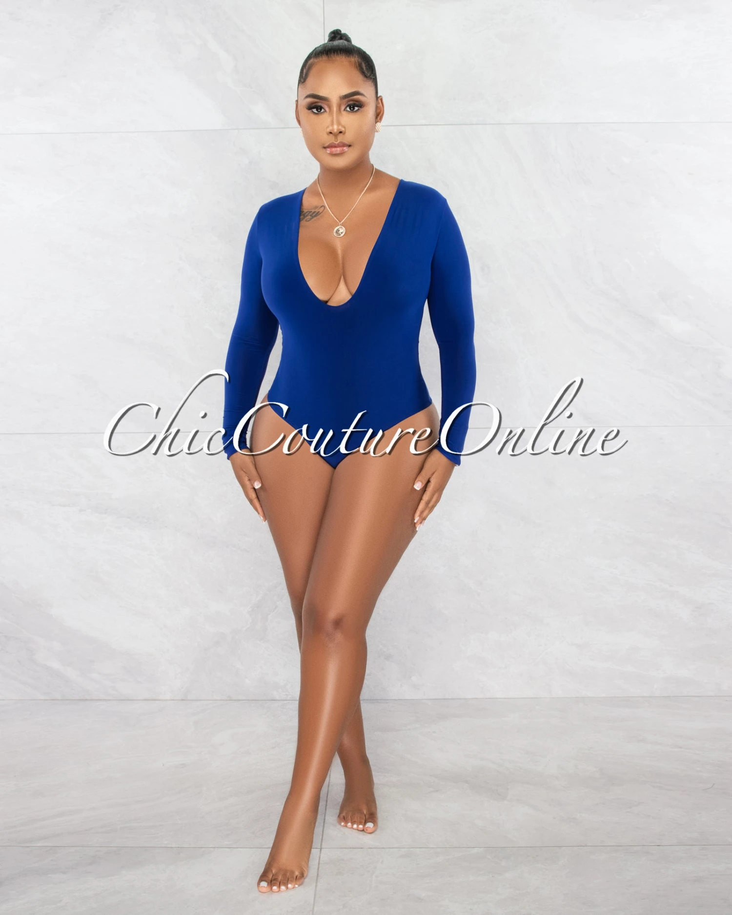 Nilam Royal Blue Depp V Neck Long Sleeves Bodysuit