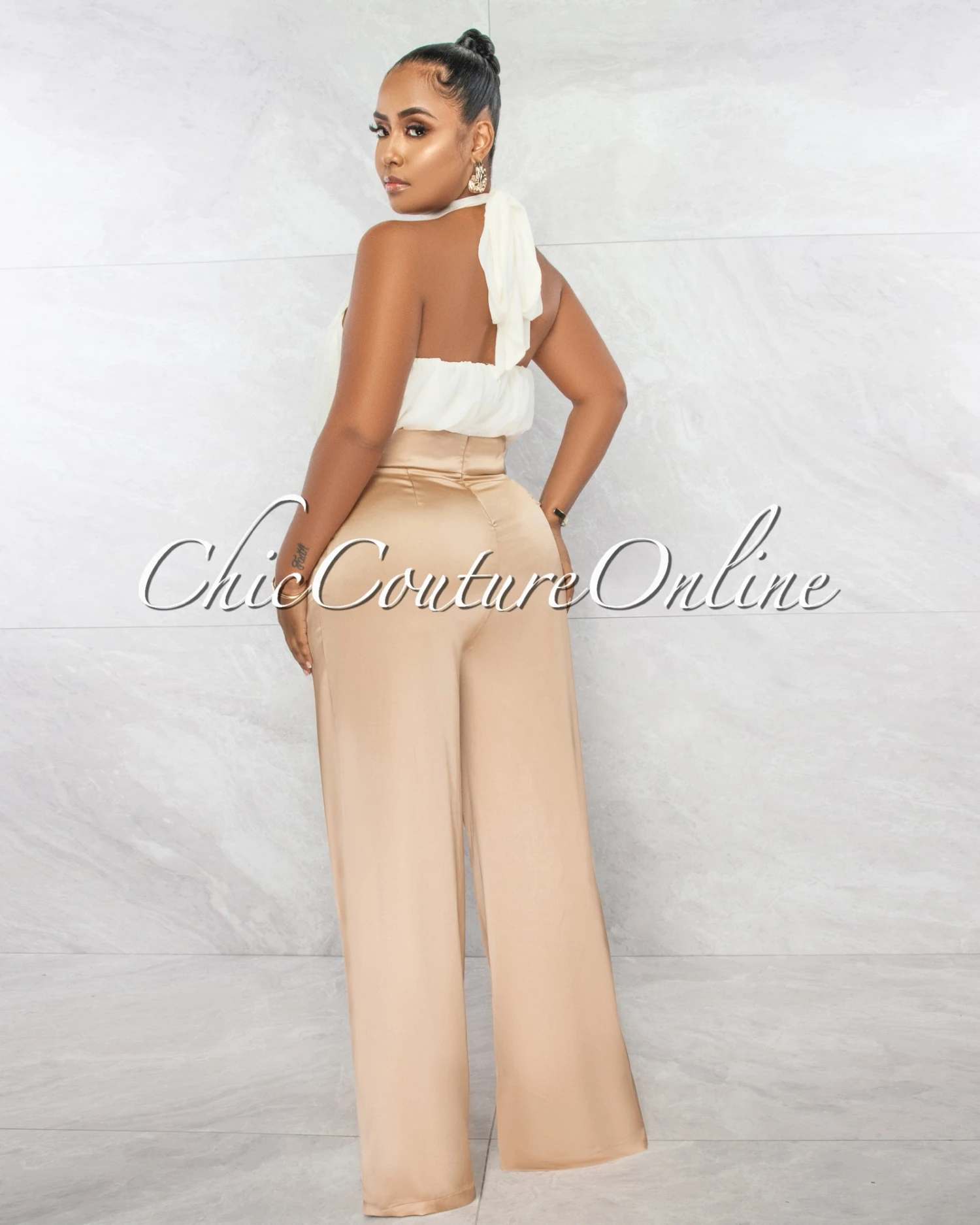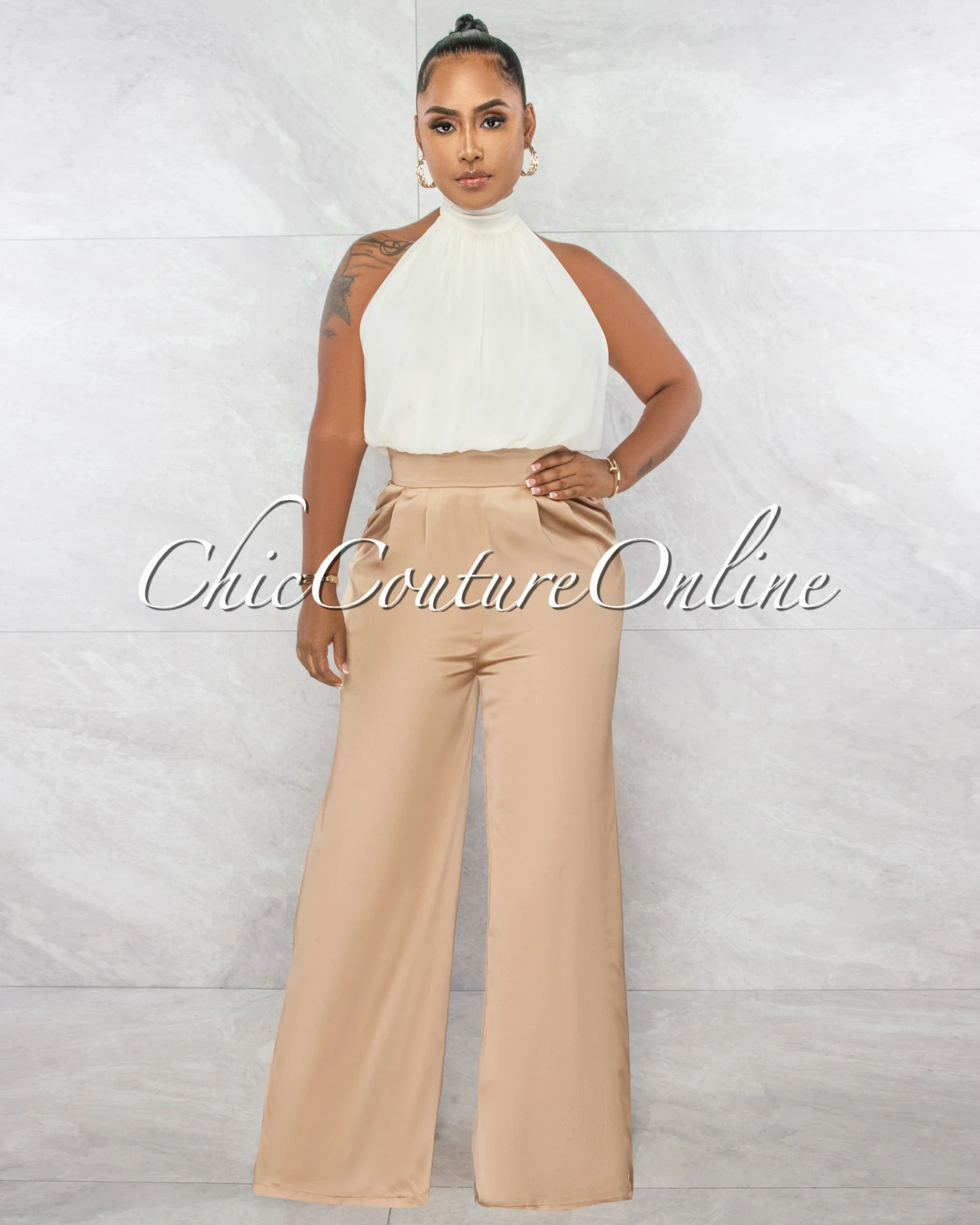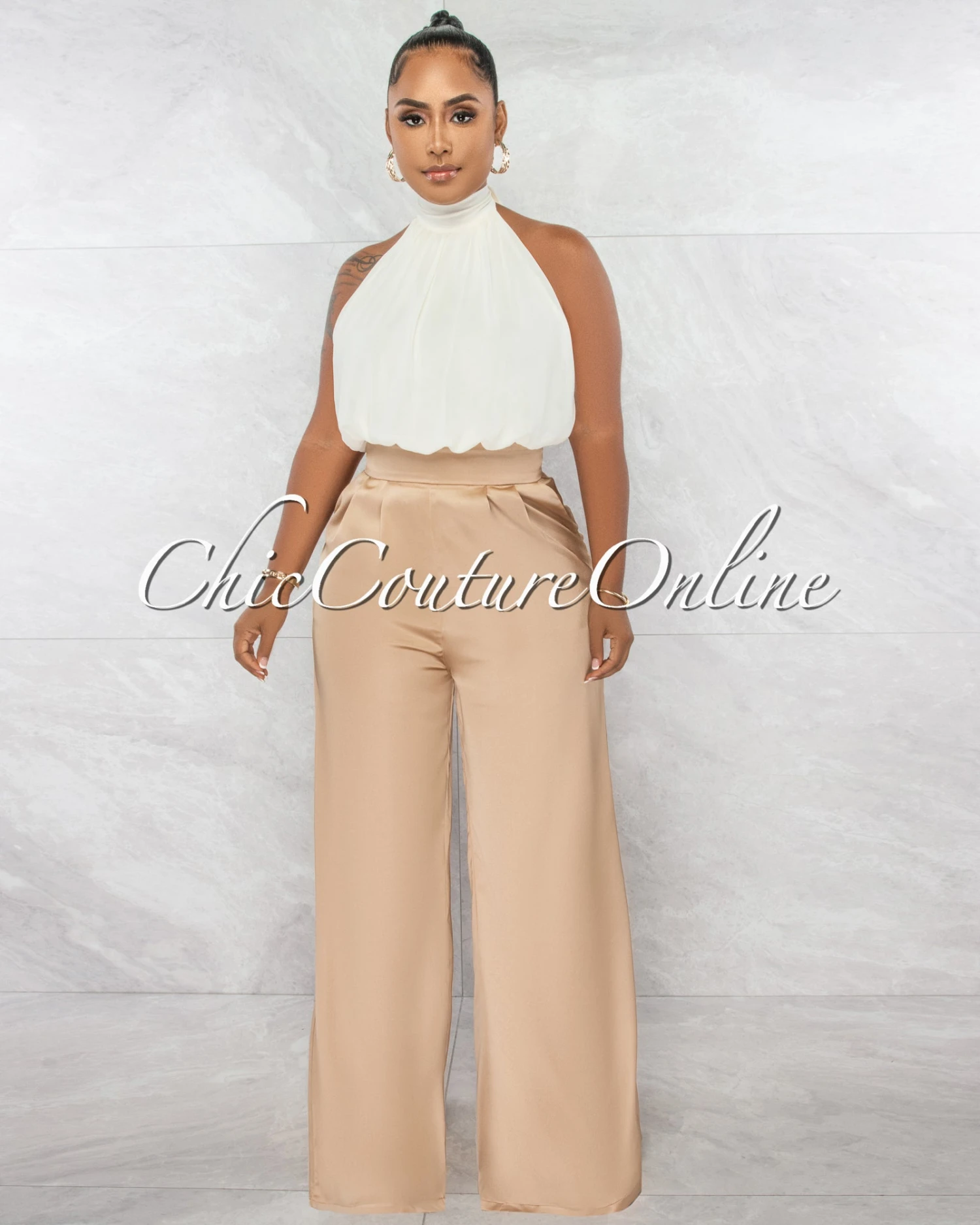 Gold has never looked as sophisticated as it does on this effortless jumpsuit.