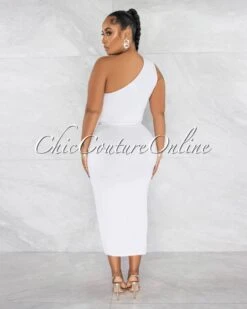 Twyla Off-White Single Shoulder Front Slit Midi Dress